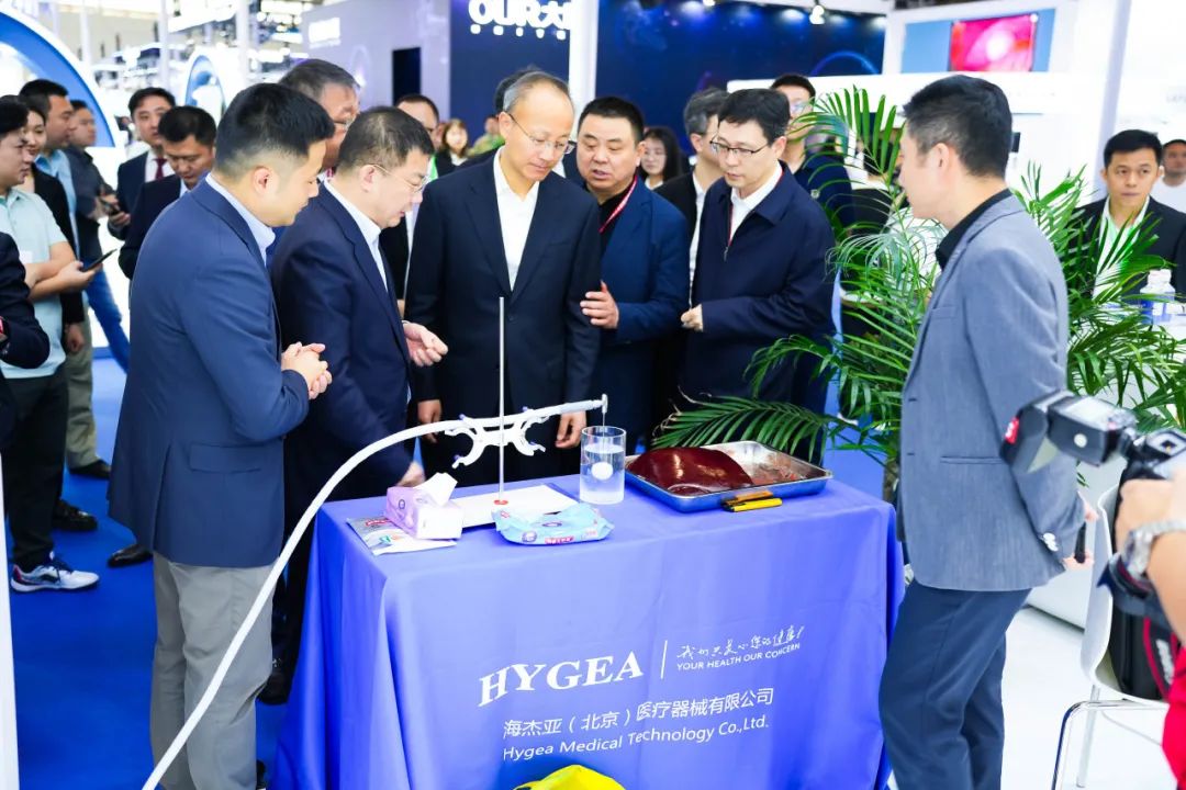会议期间工业和信息化部总经济师高东升,原卫生部副部长朱庆生、中国医学装备协会驻会副理事长李志勇、专家委员会常务副主委赵自林、专家委员会常务副主委王东升参观海杰亚展台,海杰亚医疗副总经理黄文明、海杰亚医疗副总经理蔡碧林为专家讲解「易」系列产品的技术原理及临床应用,各位专家对海杰亚医疗和康博刀等产品表示高度认可。中国医学装备协会理事长侯岩女士带领专家参观海杰亚展台,并对海杰亚的发展表示诚挚的祝福。于此同时,凭借着创新技术、高质量的产品,海杰亚也得到了海外市场的关注,俄罗斯驻华商务处代表顾问团对海杰亚产品充分肯定,后续海杰亚也会持续发展海外市场,为国产高质量器械出口海外做出贡献。